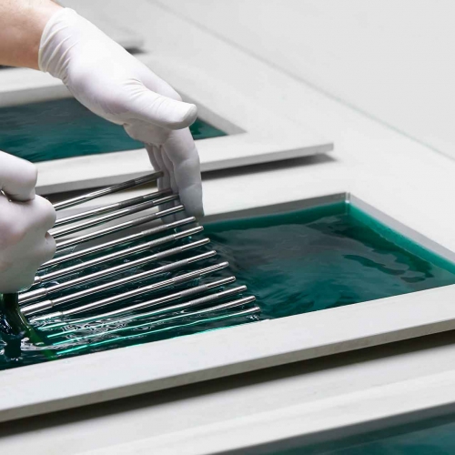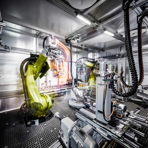 Dies galt es in der Unternehmensfotografie entsprechend darzustellen. Um den hohen Anspruch des Technologieführers in den Industrieaufnahmen aufzugreifen, wurde die Maschinentechnik parallel fotografiert und anschließend aus mehreren Bildern zusammengefügt. Um eine konstante Bildsprache zu erhalten, wurde ausschließlich mit gesetztem Licht gearbeitet.